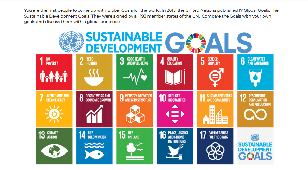 Looking at these world problems, design your own 17 Global Goals. Create your own pictures/symbols to match your goals. You can use the template below, or be creative or innovative and make your goals your own.