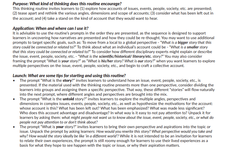 The thinking routine we are exploring this week is Stories. A routine for uncovering accounts of complex issues. Watch the video and consider how the refugee crisis, events, people, society, etc. are presented; what has been left out, and how might you want to present the global issue.